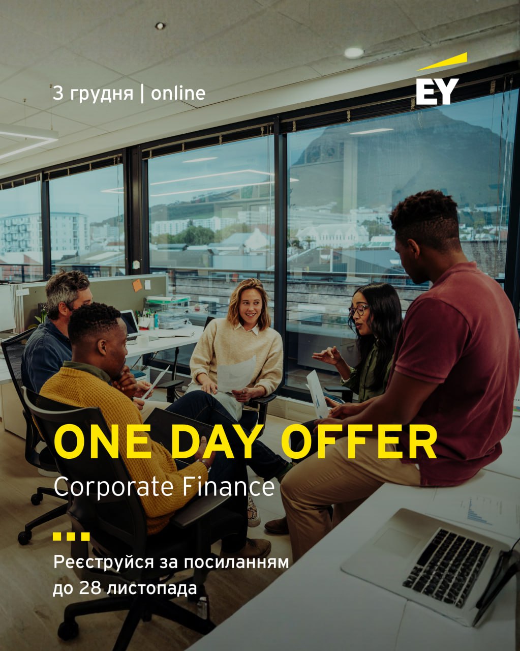 EY One Day Offer: Corporate Finance19 Листопада 2025р.