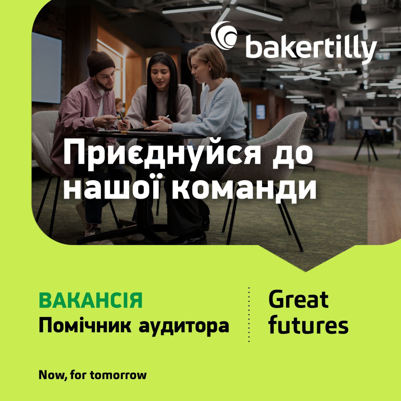Молодший аудитор24 Лютого 2026р.![]() #вакансії_перспектива Почни кар’єру аудитора вже у січні разом із Baker Tilly! 🌍 Baker Tilly, одна з найбільших міжнародних аудиторських і консалтингових компаній, запрошує студентів 2+ курсу та випускників економічних спеціальностей на позицію «Помічник аудитора» в офіси в Києві, Одесі, Тернополі та Запоріжжі. 🏆 Ми шукаємо тих, хто: 🔸 володіє базовими знаннями бухгалтерського обліку 🔸 вміє аналізувати дані й працювати з великими обсягами інформації 🔸 готовий навчатися та рости разом із нами 💡 Чому це твій ідеальний вибір? 🔸 робота у професійному колективі 🔸 навчання та сертифікація за рахунок компанії (включаючи ACCA, CIPA, ОСНАД та інші) 🔸 кар'єрний та професійний ріст 🔸 курси англійської мови 🔸 медичне страхування та програма психологічної підтримки Співробітникам, які навчаються, забезпечуємо практику ✅ 📍 Формат роботи: гібридний, графік пн-пт, 9:00-18:00. 💼 Надсилай резюме за лінком або у тг @victoria_bakertilly Отримуй можливість працювати в компанії, яка інвестує у твій розвиток. 👩💻 Будуй кар’єру своєї мрії вже сьогодні! |