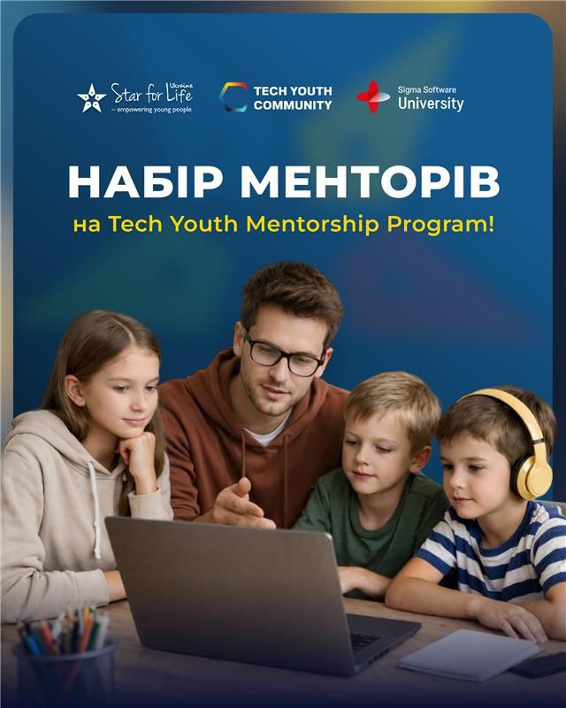 Star for Life Ukraine у партнерстві з Sigma Software University запрошує студентів 3–5 курсів долучитися до практичної менторської програми, аби стати наставниками для школярів 10–17 років і разом реалізувати реальні IT-проєкти.