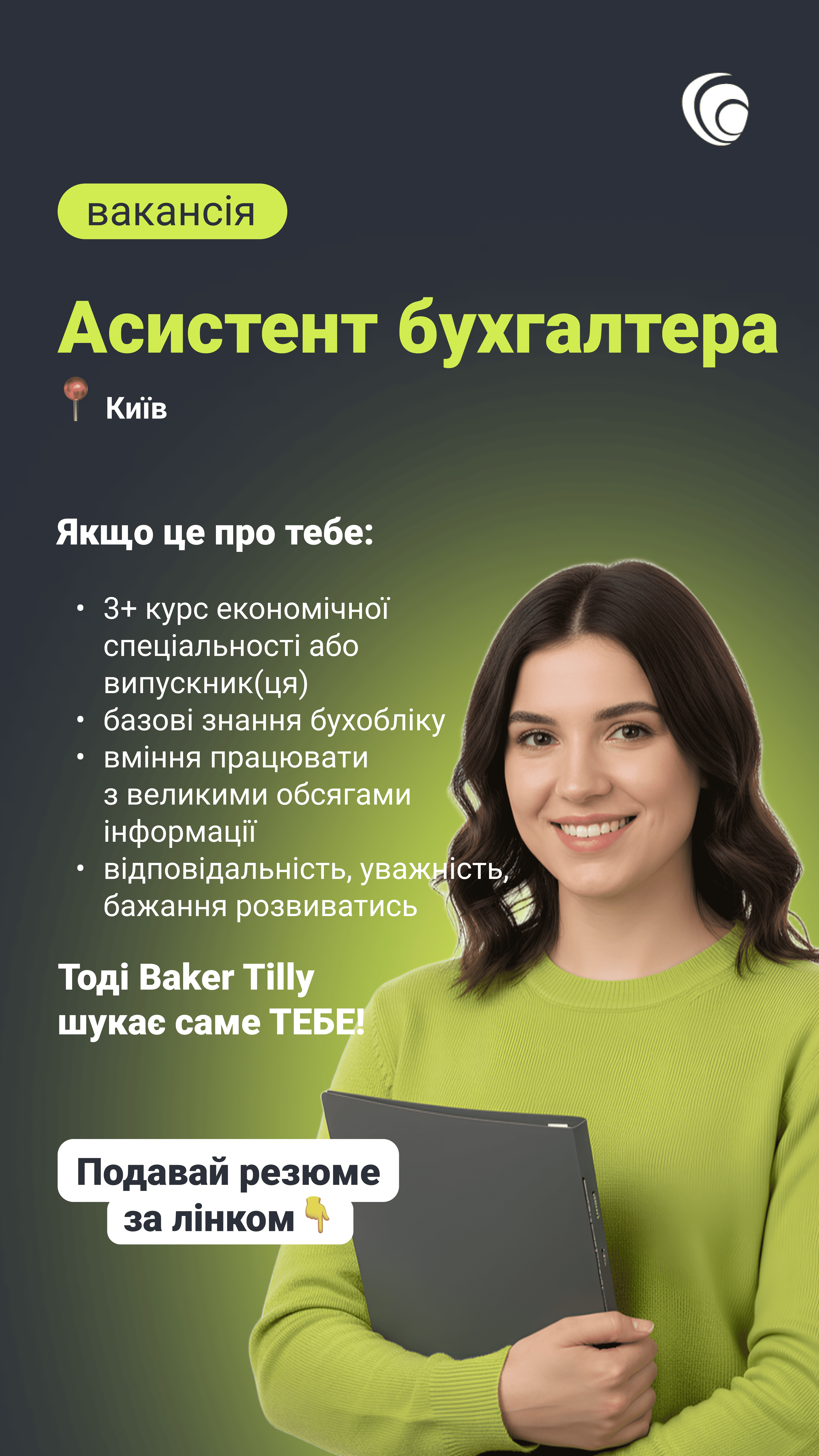 🏢 Baker Tilly, одна з найбільших міжнародних аудиторських і консалтингових компаній, запрошує студентів 3+ курсу та випускників економічних спеціальностей на позицію «Асистент бухгалтера» в офіс у Києві.