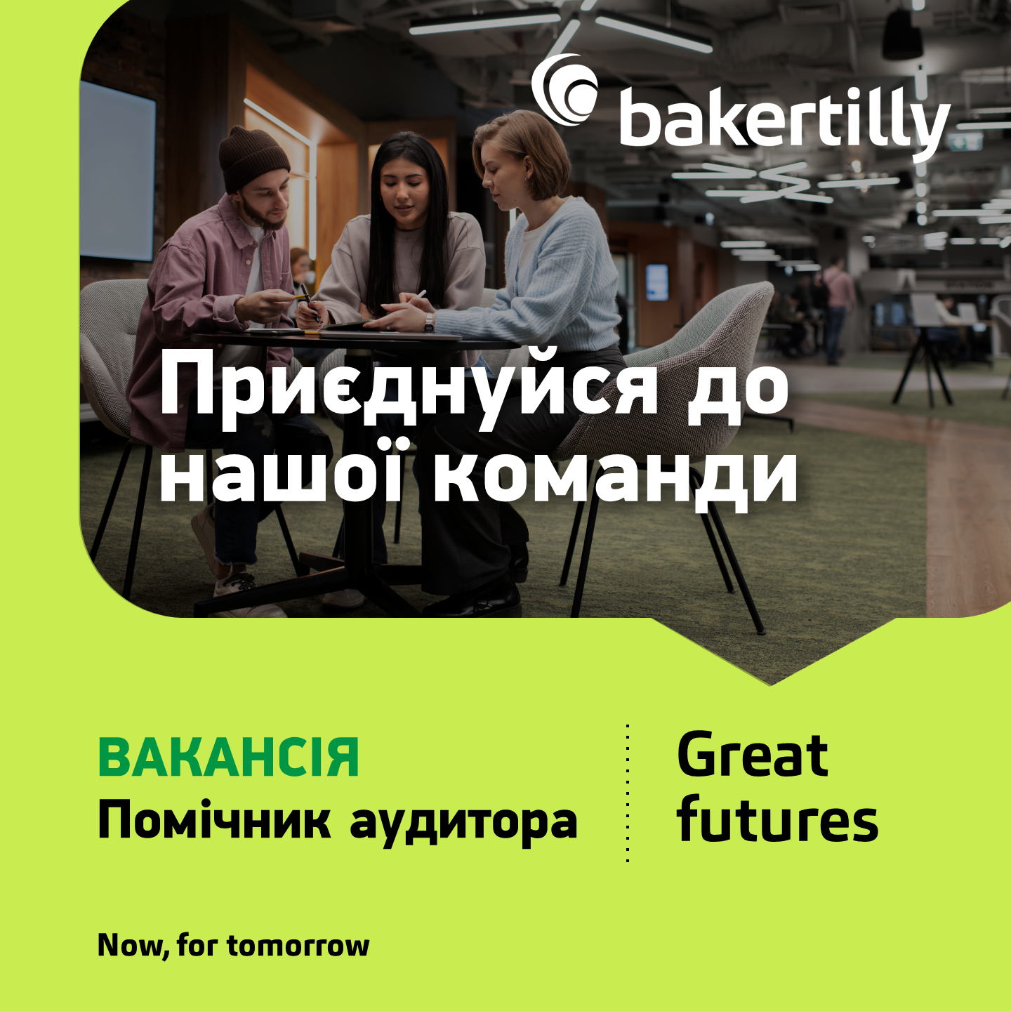 Помічник аудитора29 Вересня 2025р.![]() #вакансії_перспектива Маєш пристрасть до аналізу та деталей? 💼 Розпочни кар’єру аудитора в Baker Tilly! 🌍 Baker Tilly, одна з найбільших міжнародних аудиторських і консалтингових компаній, запрошує студентів 3+ курсу та випускників економічних спеціальностей на позицію «Помічник аудитора» в офіси в Києві, Запоріжжі. 🏆 Ми шукаємо тих, хто: 🔹 володіє базовими знаннями бухгалтерського обліку 🔹 вміє аналізувати дані й працювати з великими обсягами інформації 🔹 готовий навчатися та рости разом із нами 💡 Чому це твій ідеальний вибір? 🔹 робота у професійному колективі 🔹 навчання та сертифікація за рахунок компанії (включаючи ACCA, CIPA, ОСНАД та інші) 🔹 кар'єрний та професійний ріст 🔹 курси англійської мови 🔹 медичне страхування та програма психологічної підтримки Співробітникам, які навчаються, забезпечуємо практику ✅ 📍 Формат роботи: гібридний, графік пн-пт, 9:00-18:00. 💼 Надсилай резюме за лінком або у телеграм @victoria_bakertilly і отримуй можливість працювати в компанії, яка інвестує у твій розвиток. 👩💻 Будуй кар’єру своєї мрії вже сьогодні! |