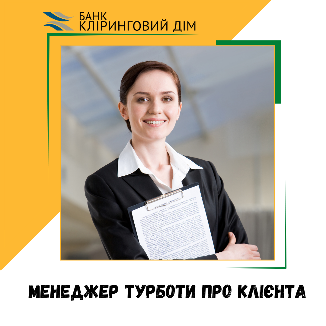 🏢Банк «Кліринговий Дім, АБ», шукаємо в команду Менеджера турботи про клієнта, який буде відповідати за створення та підтримку позитивного досвіду взаємодії із нашими клієнтами.