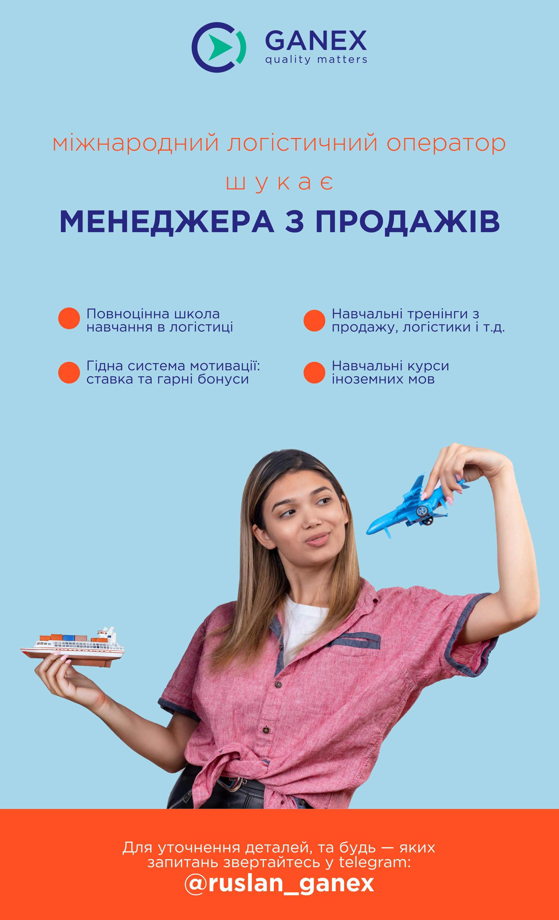 🏢 GANEX GROUP - логістичний оператор, що працює з ринками Європи та Азії, запрошує тебе в команду продажів!
