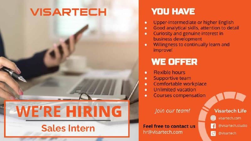 hr@visartech.com with the subject "Sales Intern" or apply by the link