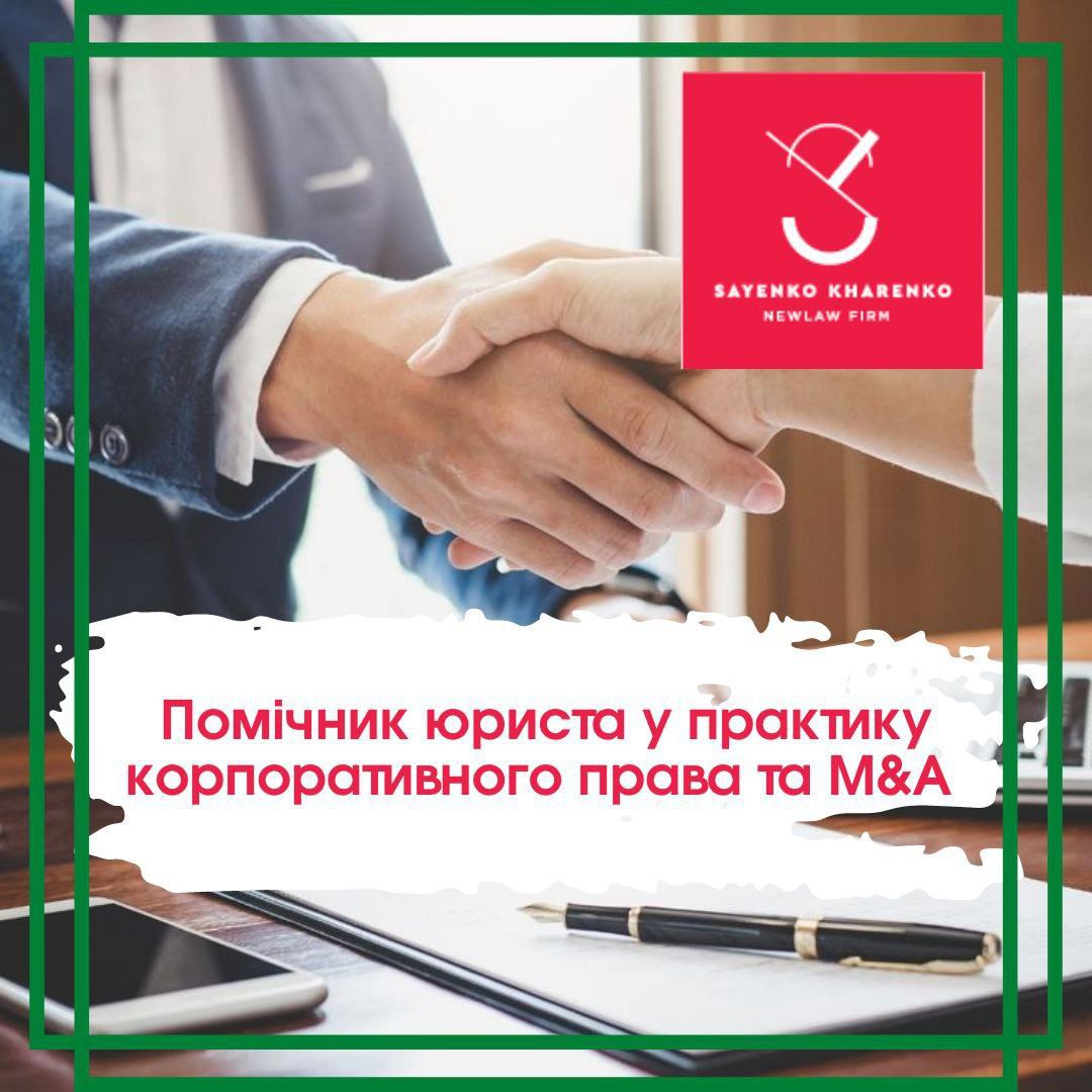 Юридична фірма "Sayenko Kharenko" у пошуках вмотивованого та амбітного помічника юриста у практику корпоративного права та M&A!