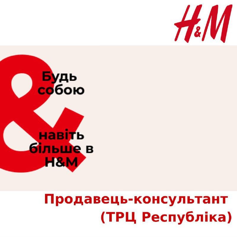 Продавець-консультант24 Вересня 2021р.![]() #вакансії_перспектива H&M - одна із найбільших компаній, що спеціалізується на роздрібному продажі величезного асортименту якісного, модного та доступного одягу для чоловіків, жінок і дітей. Налічуючи вже більше 181 тисячу працівників по всьому світу. Наша команда зростає, тому ми чекаємо нових людей, які проявлять себе на позиції: Продавця-консультанта у наш магазин у ТРЦ "Республіка" Ми очікуємо, що ти: •готовий будеш працювати в інших магазинах H&M до відкриття ТРЦ "Республіка"; •відкритий до людей; •насолоджуєшся швидким темпом роботи; •готовий працювати за гнучким робочим графіком ...решті ти можеш навчитися у нас! Ми пропонуємо: •часткову зайнятість; •контракт від 10-40 годин на тиждень; •25% знижки на товари H&M для тебе та одного з членів твоєї родини; •можливість комбінувати роботу з твоїм особистим життям; •можливість бути частиною всесвітньо відомої команди модної індустрії; •можливість долучитися до унікальної культури компанії H&M, де ти будеш працювати з колегами, які стануть твоїми друзями; •медичне страхування після 6 місяців роботи Звучить захопливо? Тоді це твій шанс зробити найкращу кар'єру! Подавайся вже зараз і розпочни свою власну кар'єру у нашій компанії. Більше: https://cutt.ly/gEljgV1 |