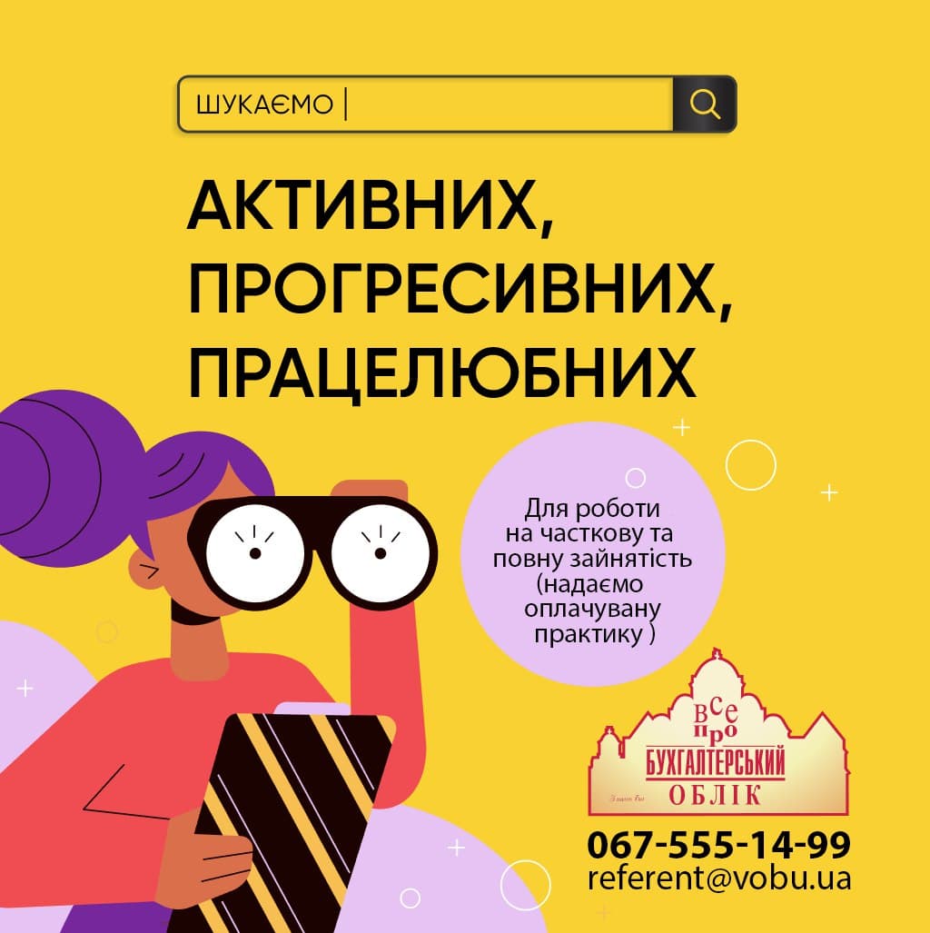 Редакція газети «Все про бухгалтерський облік» запрошує ініціативних та креативних студентів та випускників на практику, стажування та працевлаштування!