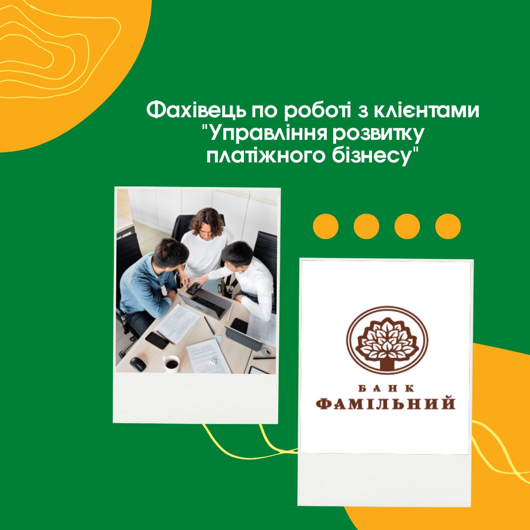 Команда ПрАТ «БАНК ФАМІЛЬНИЙ» запрошує фахівця по роботі з клієнтами "Управління розвитку платіжного бізнесу"