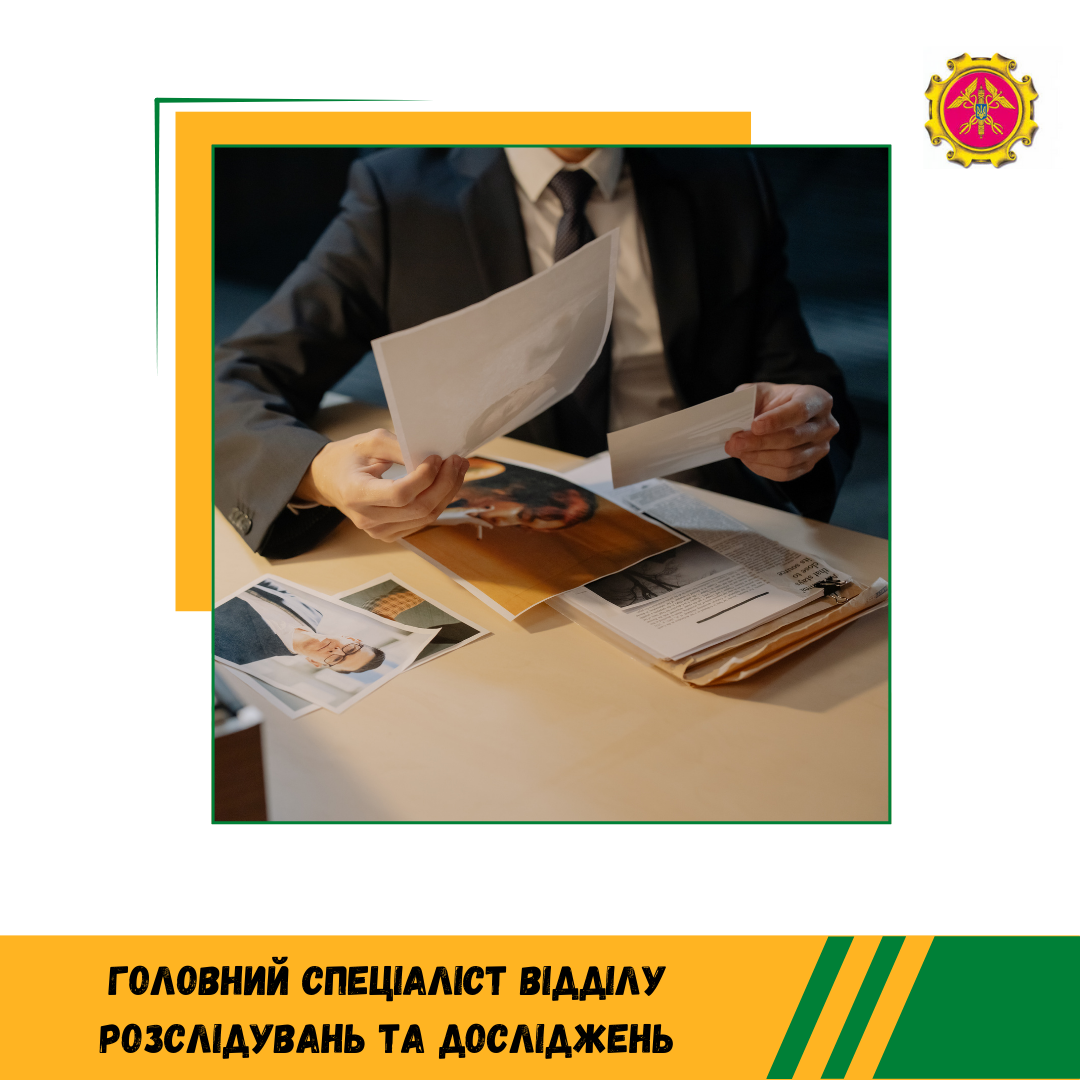- Головний спеціаліст відділу розслідувань та досліджень.