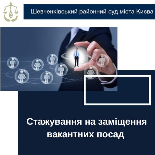 Шевченківський районний суд міста Києва запрошує випускників з високим рівнем успішності для проходження стажування на заміщення вакантних посад:14 Вересня 2022р.![]() #вакансії_перспектива Шевченківський районний суд міста Києва запрошує випускників з високим рівнем успішності для проходження стажування на заміщення вакантних посад: секретаря судового засідання; судового розпорядника; я головного спеціаліста з інформаційних технологій; головного спеціаліста із забезпечення зв’язків із засобами масової інформації; головного спеціаліста відділу організаційного забезпечення розгляду кримінальних справ; головного спеціаліста відділу організаційного забезпечення розгляду цивільних та адміністративних справ. На зазначені посади може бути призначений: громадянин України, має вищу освіту за спеціальністю "Правознавство" або "Правоохоронна діяльність" з освітньо-кваліфікаційним рівнем не нижче молодшого бакалавра або бакалавра, вільно володіє державною мовою, без вимог щодо стажу роботи. Детальніша інформацію у відділі кадрової роботи та управління персоналом Шевченківського районного суду м.Києва за адресою: м.Київ, вул. Дегтярівська, 31 а, кабінет 202, тел. (044) 483-09-49). |