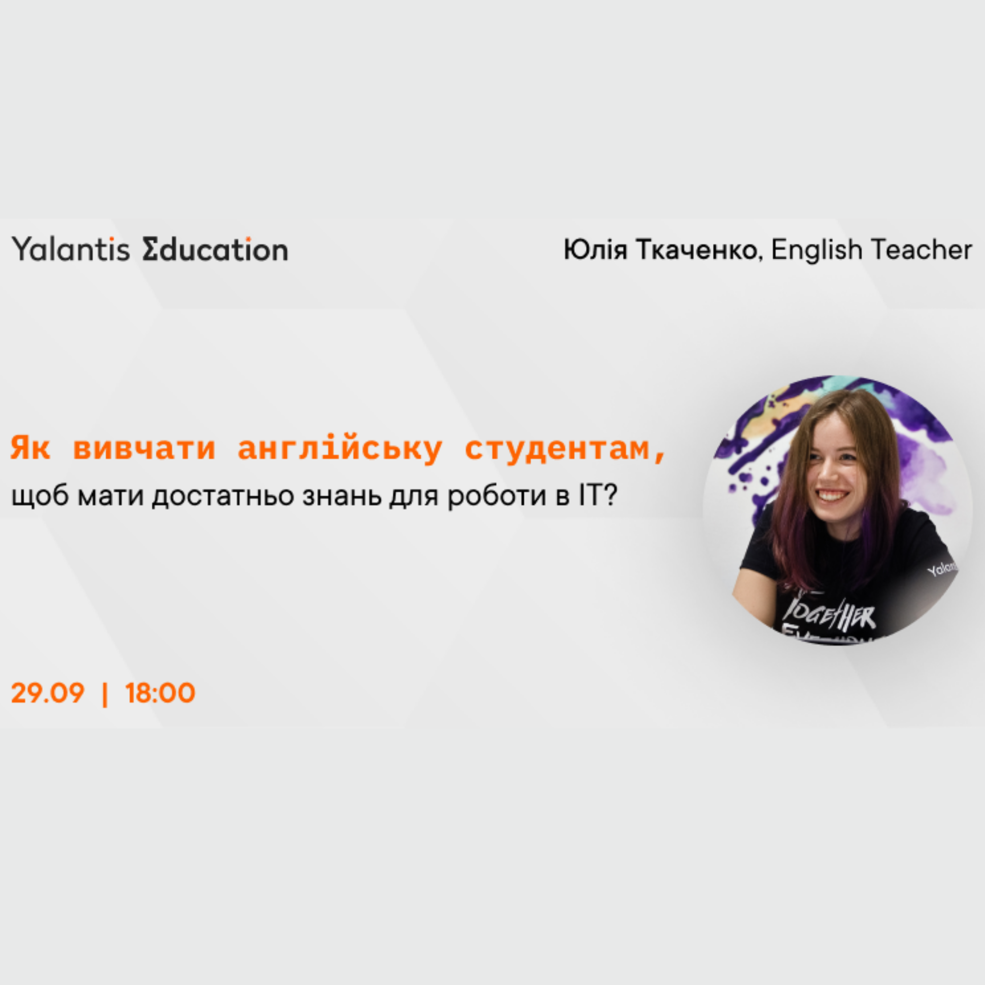 English Teacher компанії Yalantis Юлія Ткаченко підготувала спіч про це та розкаже: