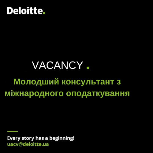 Компанія «Делойт» в Україні шукає молодшого консультанта, який працюватиме в складі Групи з надання послуг з міжнародного оподаткування та послуг приватним клієнтам у податково-юридичному відділі в київському офісі.