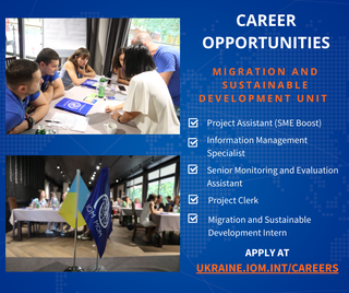 Шукаємо співробітників та співробітниць, які долучаться до команди Відділу МОМ08 Вересня 2022р.![]() #вакансії_перспектива Шукаємо співробітників та співробітниць, які долучаться до команди Відділу МОМ із питань міграції та сталого розвитку в Україні. Маємо одразу шість вакансій для тих, хто прагне зробити внесок у проєкти МОМ, спрямовані на підтримку економічного відновлення в Україні, допомогу малому бізнесу та залучення діаспори. Не проґавте термін подачі заявок! Дедлайн: 9 вересня: Асистент/ка проєкту «SME Boost» 16 вересня: Спеціаліст/ка з інформаційного менеджменту та Старший/ша асистент/ка з моніторингу та оцінки 18 вересня: Молодший/ша асистент/ка проєкту «SME Boost» 20 вересня: Асистент/ка проєкту «SME Boost» та Стажер/ка з питань міграції та сталого розвитку. Розуміння тенденцій трудової міграції та розвитку підприємництва, попередній досвід роботи у системі ООН або громадських організаціях стануть перевагою. Володіння англійською обов’язкове. Дізнатись більше про вимоги та подати резюме – https://ukraine.iom.int/uk/vakansiyi |